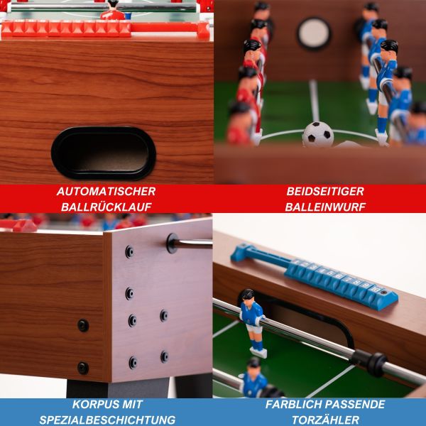 Lieferumfang: Tischkicker (unmontiert), Aufbauanleitung und Montagewerkzeug, 2 Kickerbälle (⌀ 32 mm).