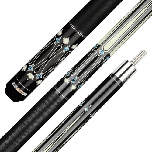 Queue Pool 2tlg., entworfen für diejenigen, die eine gute Spielbarkeit benötigen und gleichzeitig nicht auf Design verzichten wollen. Longoni VP2 Joint, schnelles Trapezgewinde, hohe Präzision. Joint am Gelenk aus poliertem Stahl. Griff aus schwarzen Leinen. Oberteil Spitzendurchmesser 12,8mm mit hochwertigen Da Vinci-Leder. Vaula Oberteil aus echtem kanadischem Ahorn mit auf dem Unterteil abgestimmten Ringen. Inklusive Schutztasche schwarze Vaula-Neopren für 1 Unterteil und 1 Oberteil.